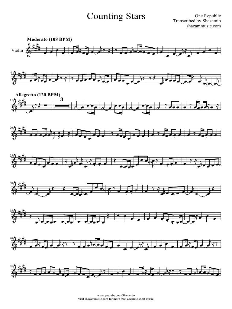 Counting stars | trumpet sheet music, saxophone sheet.